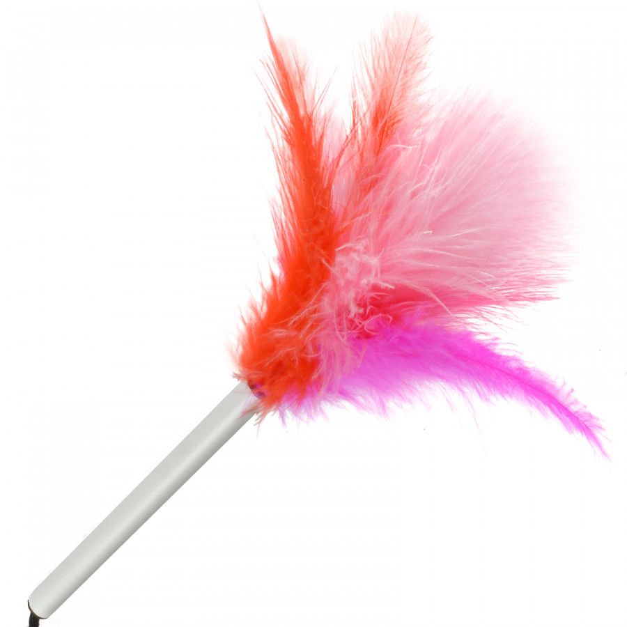 Щекоталка состоит из металлической рукояти и ярких цветных перышек. Длина ручки - 14 см.