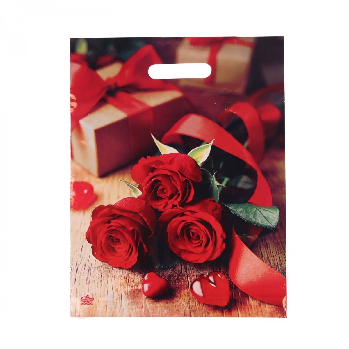 Пакет с принтом в виде роз (31х40 см).